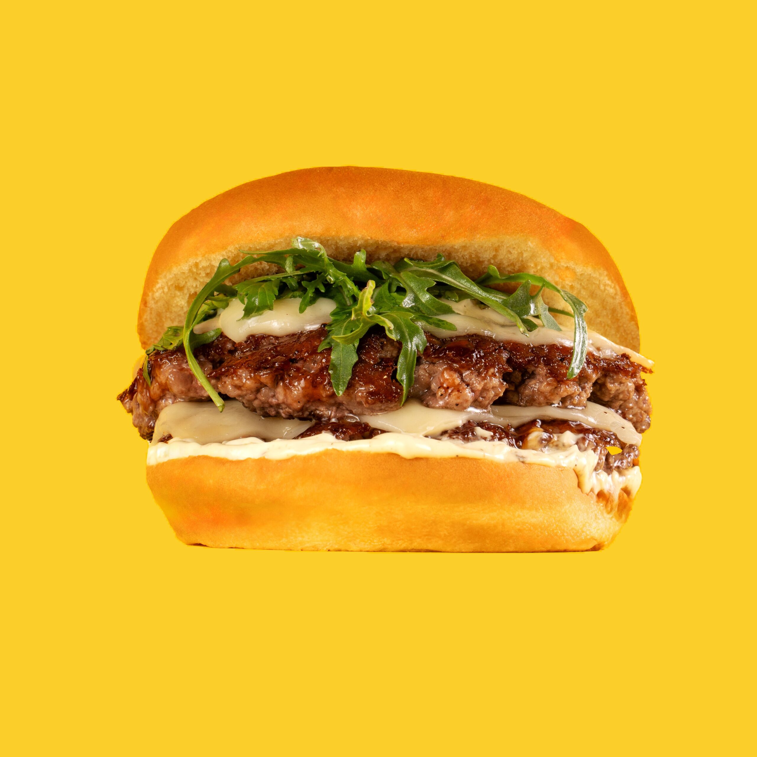 Maionese al tartufo, rucola, Smashburger, formaggio bianco, pancetta croccante