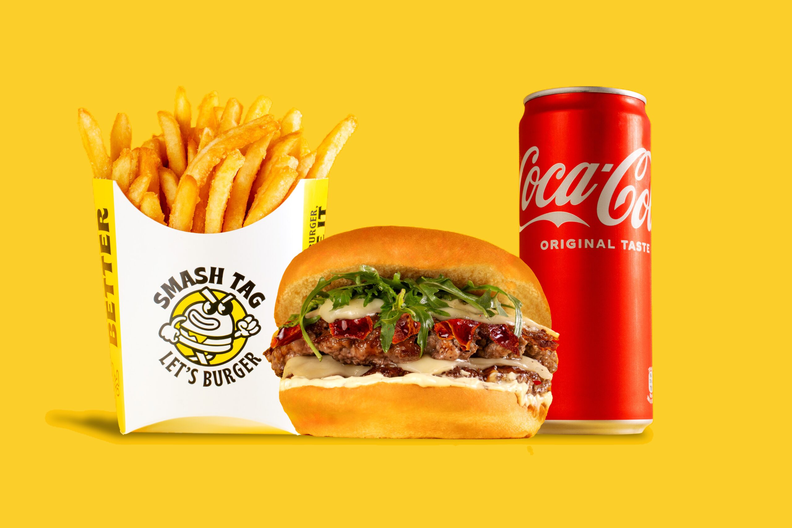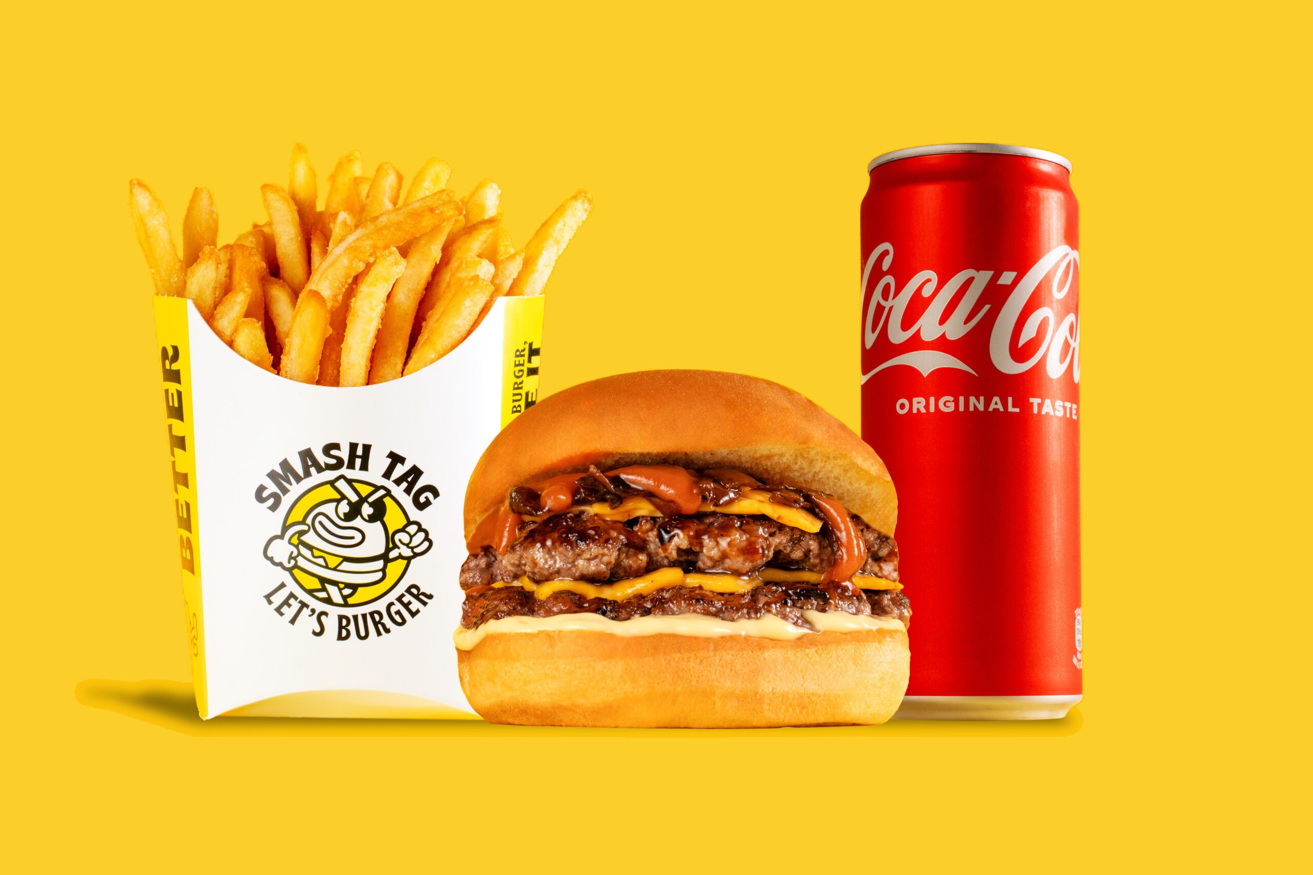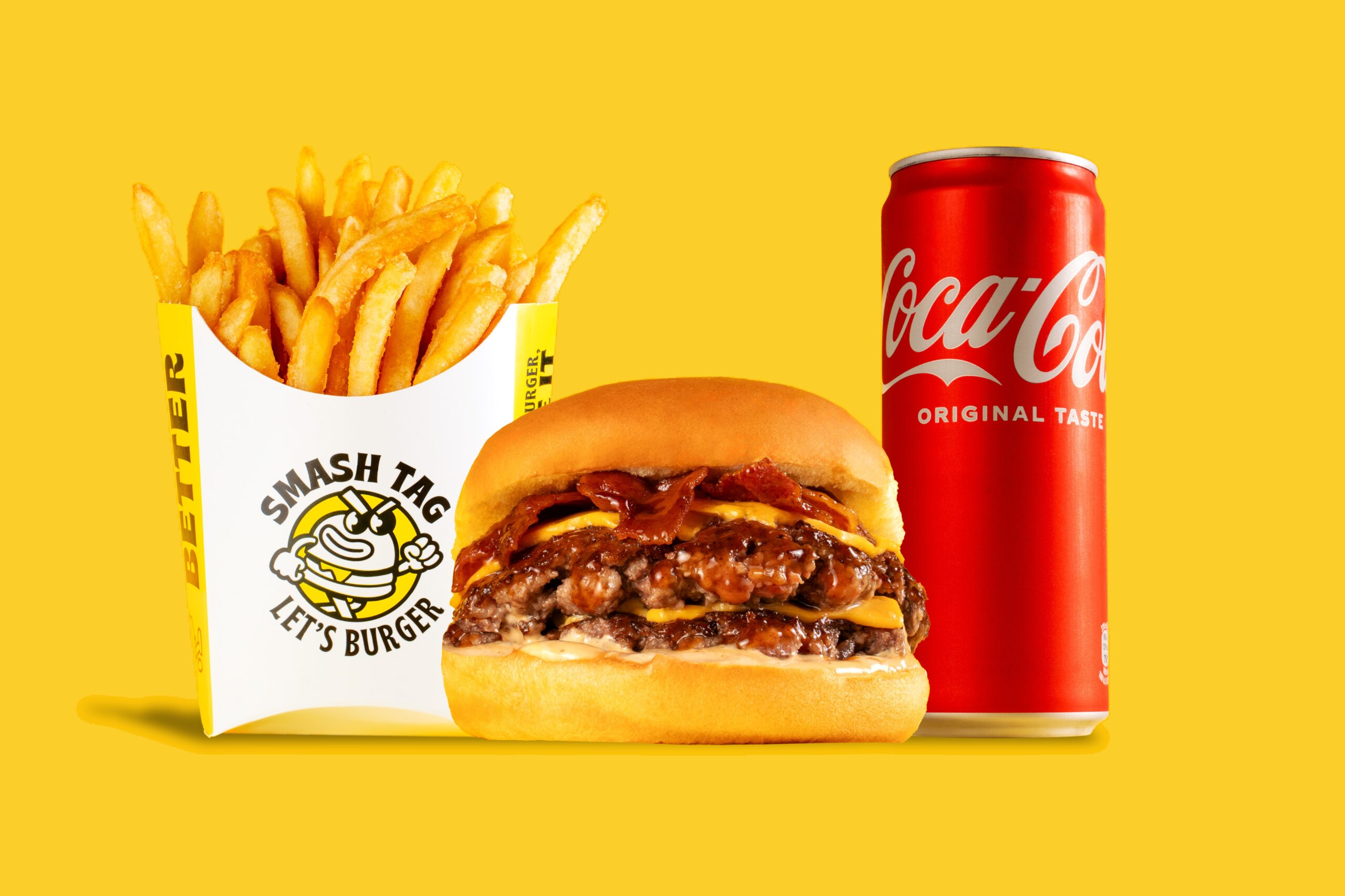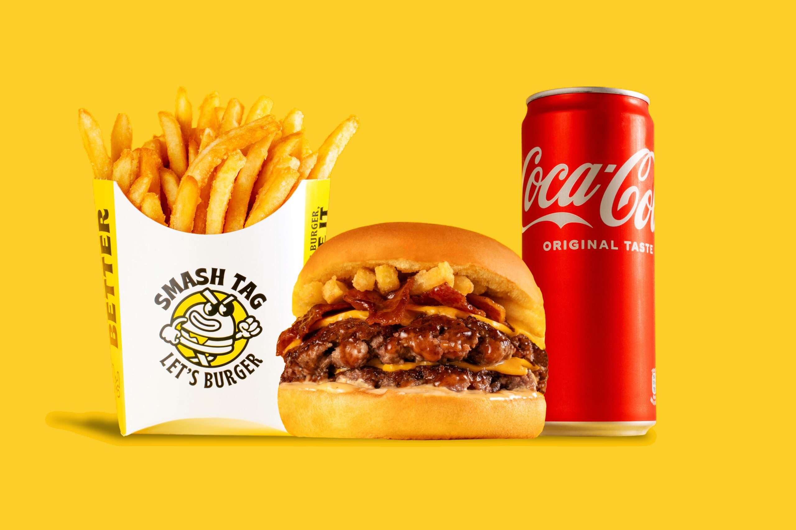 Smashburger, formaggio americano, pancetta croccante, salsa affumicata Smash Tag